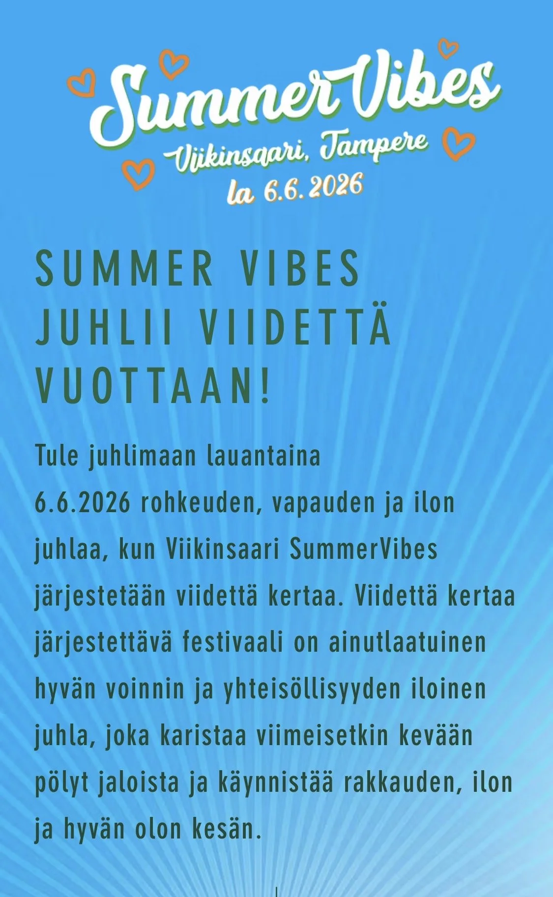 SummerVibes -hyvinvointifestarit Tampereen Viikinsaaressa la 6.6.2026